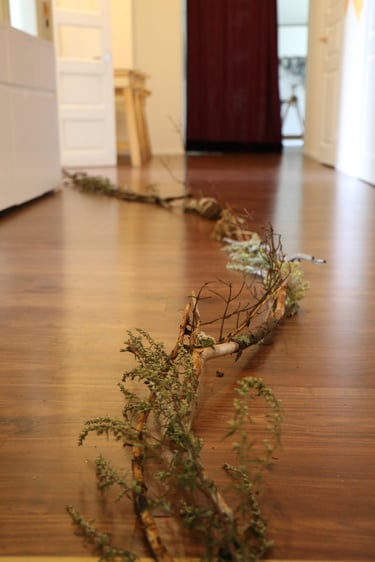 Made in collaboration with nature, this work involves installation and performance. ‘Luontosuhde’ is a Finnish word that describes our connection to the land, to the earth. During August of 2023, I completed a month-long artist residency at Arteles Creative Center in Haukijärvi, Finland.