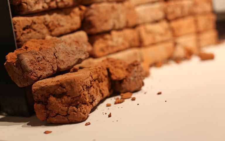 2020 | Handmade earthenware bricks, videoed performance, audio reading accessible by QR code (excerpt from Gary Haugen & Victor Boutros’ book, The Locust Effect) Duration of videoed performance: 7 hours