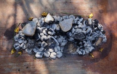 This work is ephemeral, just as life is: the cremation palette is set afire, turning the multiple paper rocks to burn to ash, and allowing me to reflect on what my role is in this industry, and how to respond to it.